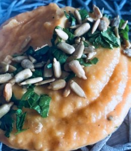Ízlés szerint tehetünk még a pürére különféle magvakat is.