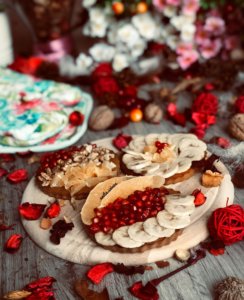In the words of the Pizza, the majority of people think of the usual pizza with meat, corn, mushrooms and cheese, but now I’ve brought you a fruity Pizza recipe made from a different angle that you can add to your taste with different fruits, seeds, sugar-free homemade jams and many more. with a lot of other delicacies.Not to mention that you can stand anywhere, since it is a really colorful, cake made from healthy raw materials. My mini pizzas are now filled with pomegranates, oranges, bananas and walnuts.