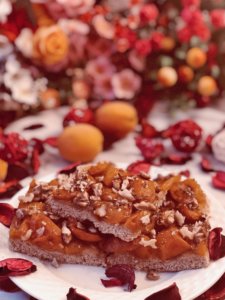 Mivel a sárgabaracknak szezonja van így készítettem egy nagyon egyszerű,de annál is finomabb lepényt,amit dióval turbóztam fel.