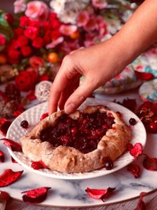 Ha már eleget pihent ,nyújtsuk kerekre a joghurtos tésztát,tegyük bele az erdei gyümölcskeveréket,úgy,hogy a széleit szabadon hagyjuk. .